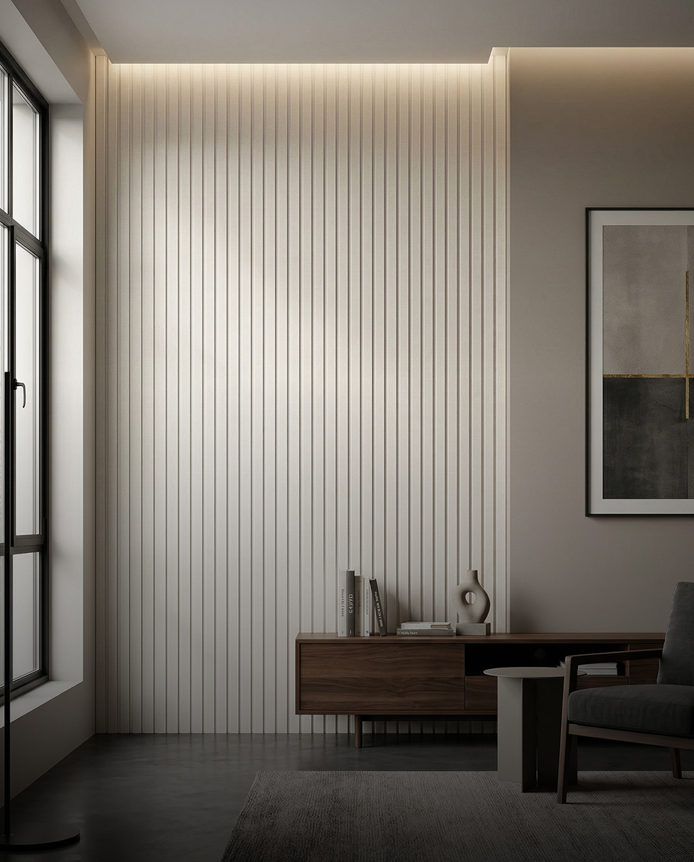 העיצוב הלינארי יוצר עומק, תנועה ומשחקי אור וצל שמכניסים חיים לקיר והופכים אותו למוקד מרכזי בעיצוב הבית או העסק.