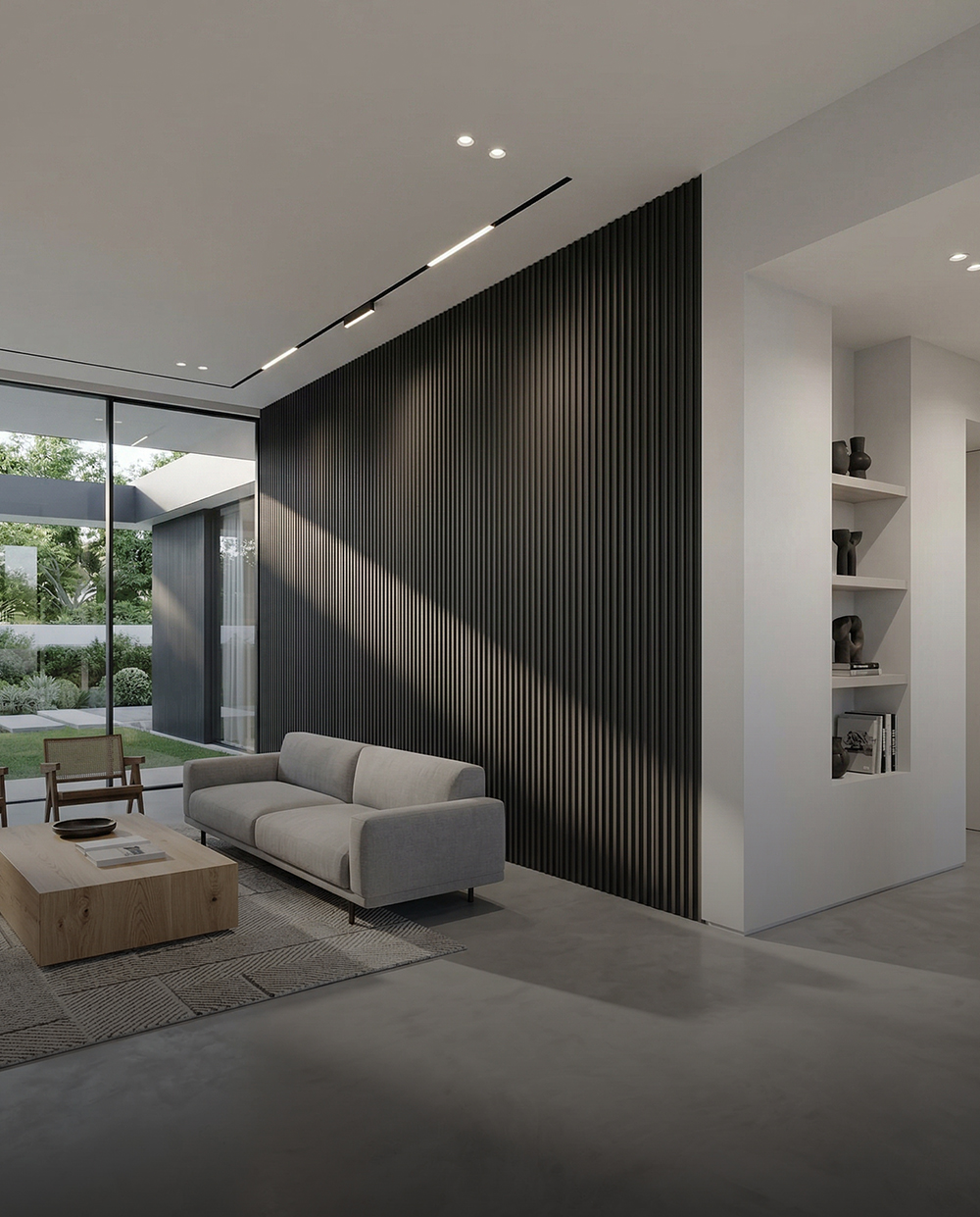 העיצוב הלינארי יוצר עומק, תנועה ומשחקי אור וצל שמכניסים חיים לקיר והופכים אותו למוקד מרכזי בעיצוב הבית או העסק.